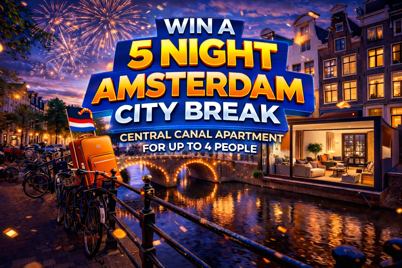 π³π± Win an Amsterdam City Break β enjoy a 5 night stay in a central canal apartment for up to 4 people for just Β£1.19 per ticket!
