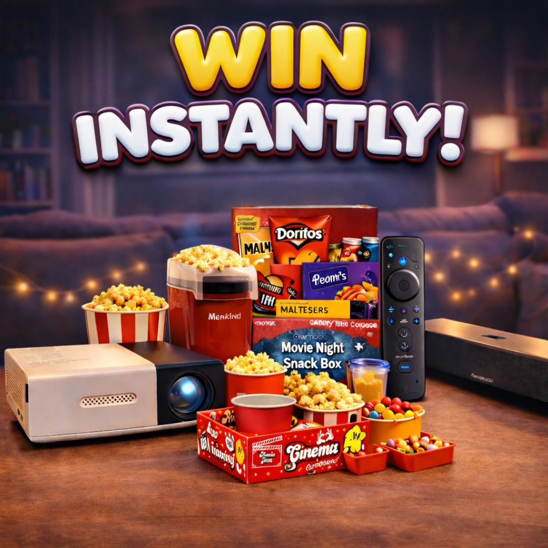 For just 79p, you could win an awesome Movie Night Mega Mini Bundle featuring everything you need for the perfect night in — plus a £25 Site Credit prize and loads of instant win site credit prizes.