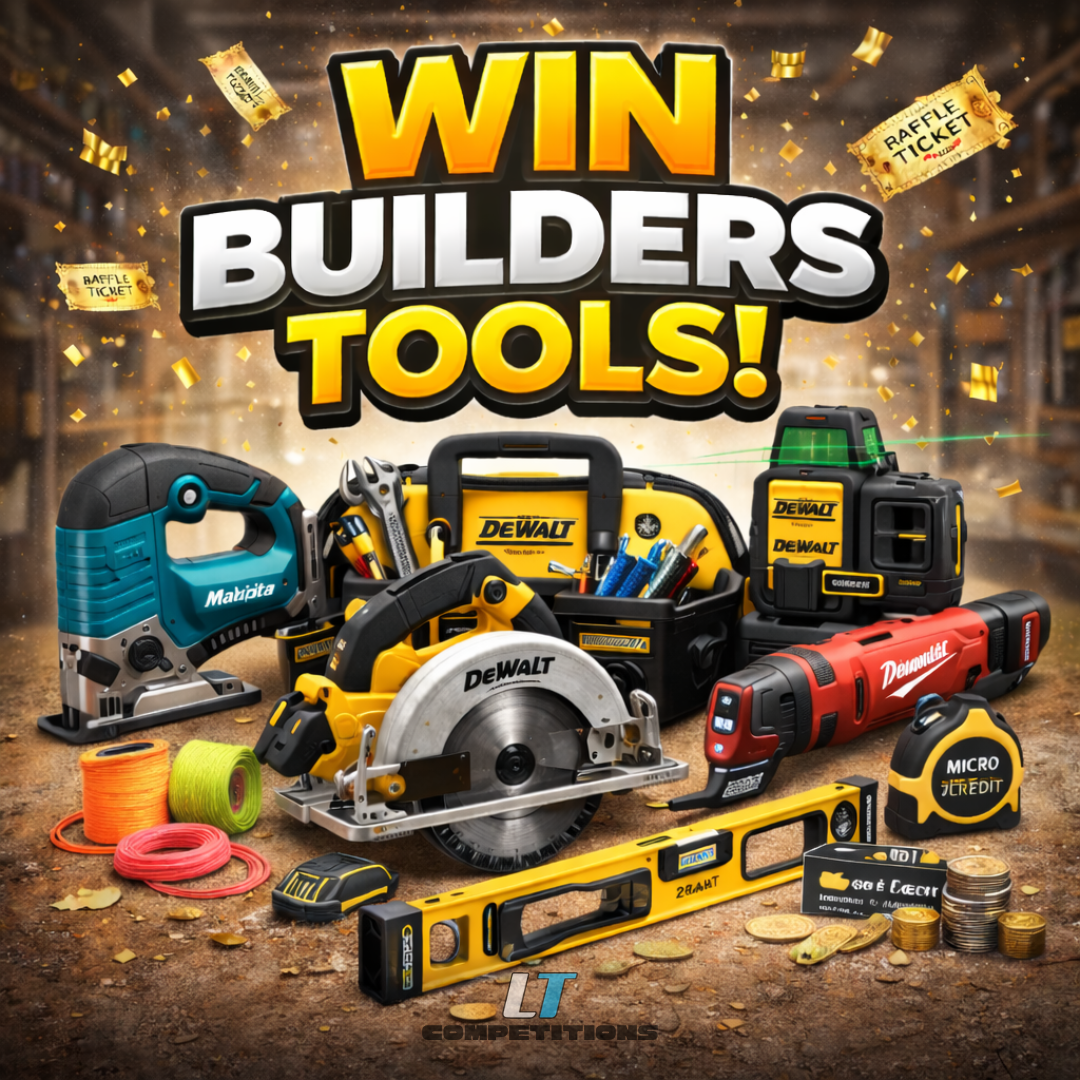 For just 89p, you could win a proper builder-ready tool bundle featuring a cordless circular saw as the main prize, backed up by essential site tools every trade relies on — plus hundreds of instant win site credit prizes.